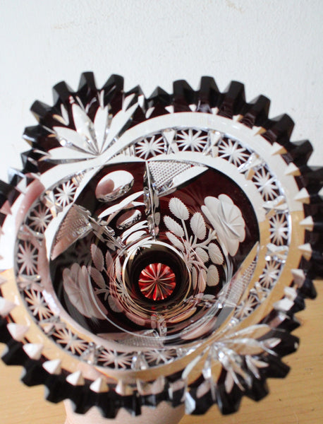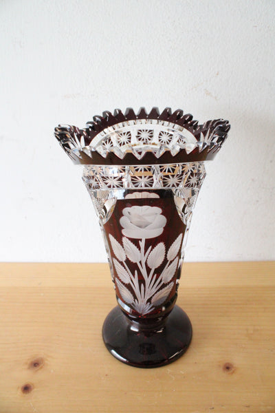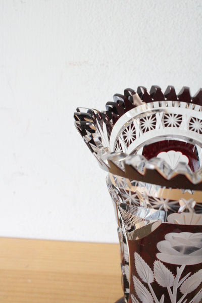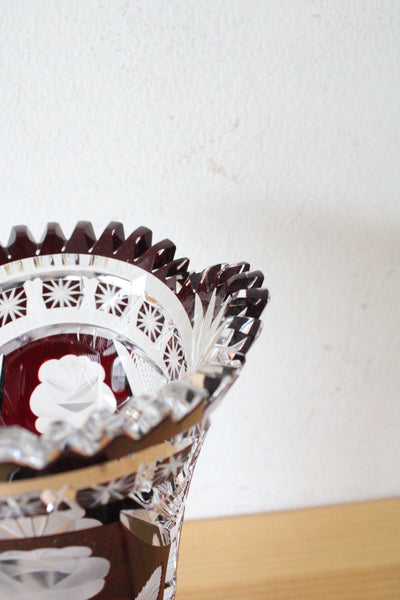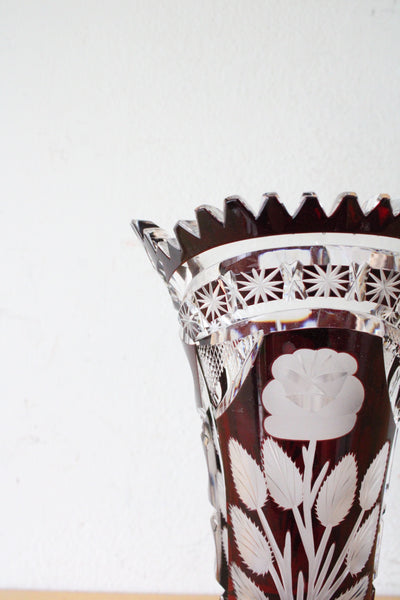 Vintage Ruby Red Bohemian Cut Glass Vase