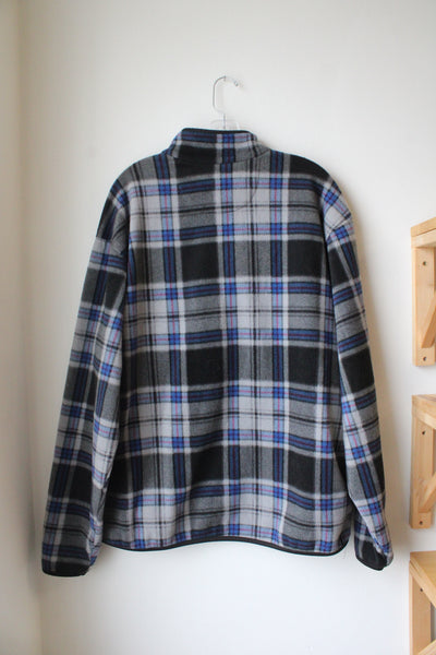 Chaps Gray Blue & Black Plaid Fleece 1/4 Button Jacket | L