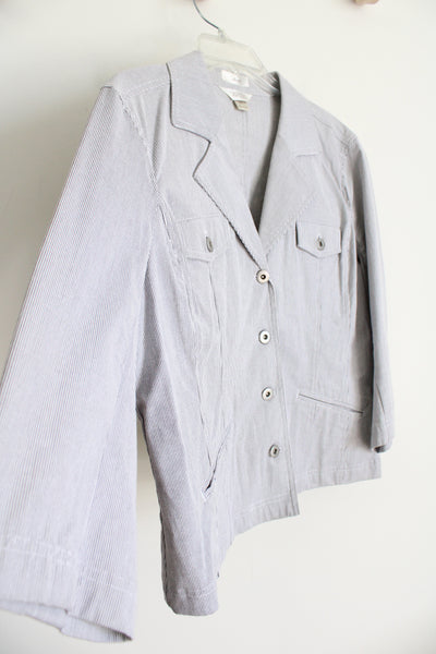 Christopher & Banks Blue White Striped Light Jacket | L Petite