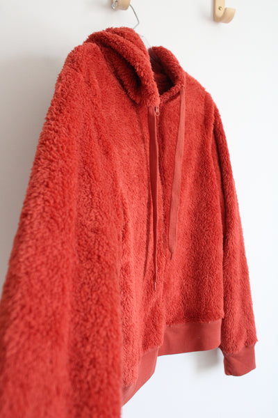 Fifth Sun Terracotta Orange Sherpa Zip Up Hoodie | L