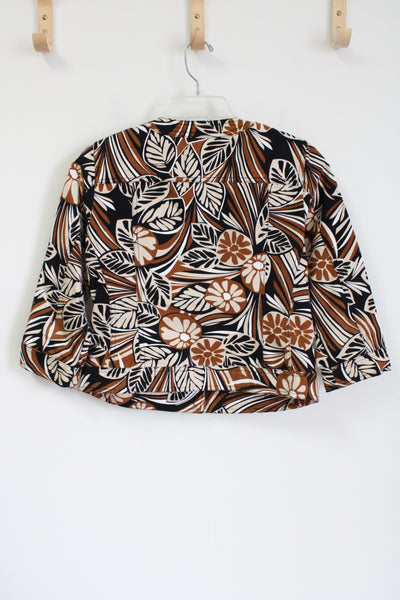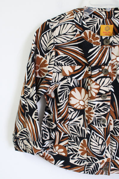 Ruby Rd. Black Brown Floral Denim Jacket | 6 Petite