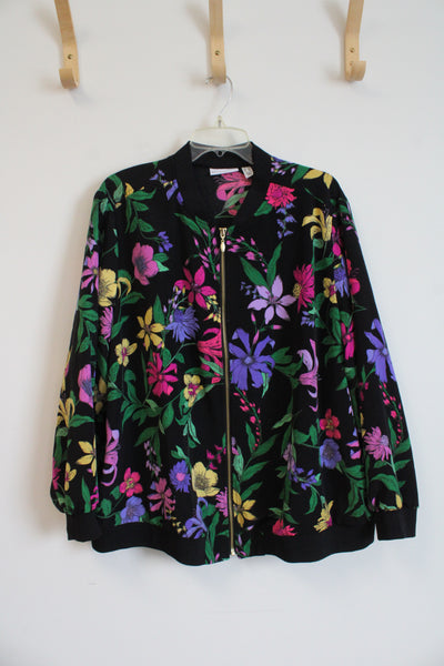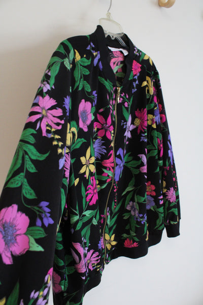 Susan Graver Black Colorful Floral Full Zip Jacket | 2X