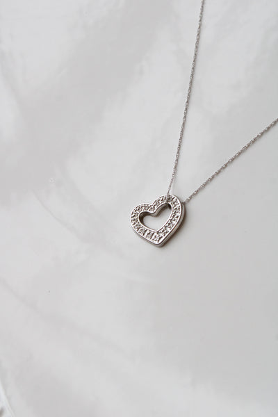 10K White Gold Heart Pendant Necklace