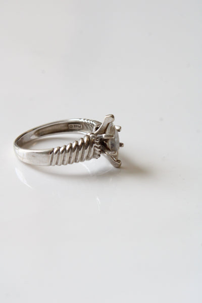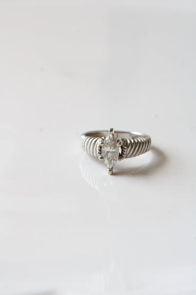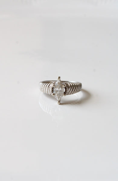 14K White Gold Marquise CZ Ribbed Ring | Size 9