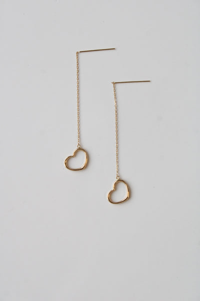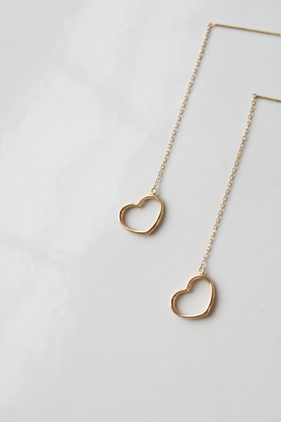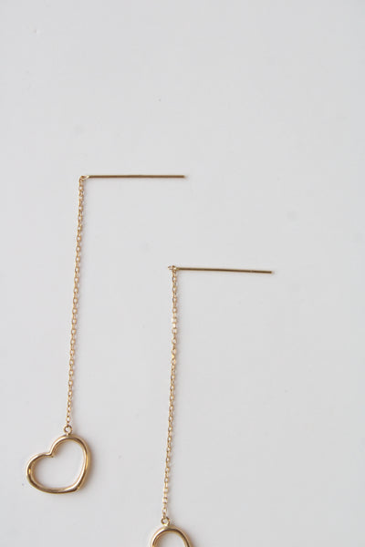 14K Yellow Gold Heart Threader Earrings