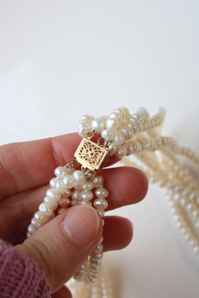 14K Yellow Gold Multi-Strand String Of Pearls