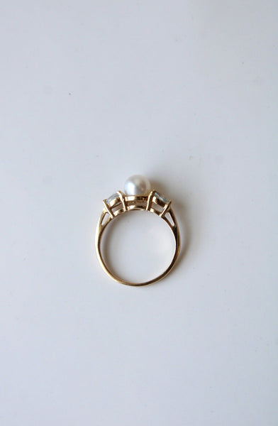 14K Yellow Gold Pearl & Blue Topaz Ring | Size 5