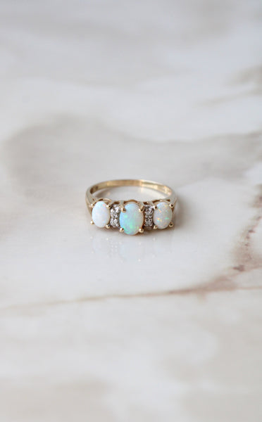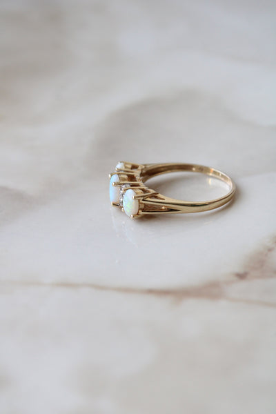 14K Yellow Gold Tri-Stone Opal Ring | Size 9
