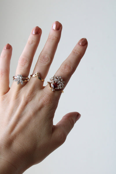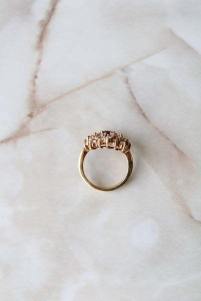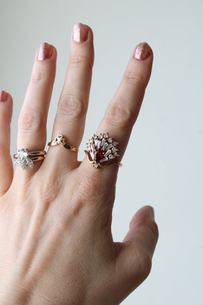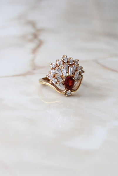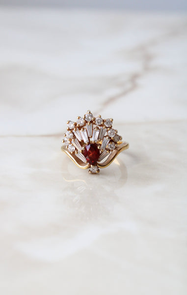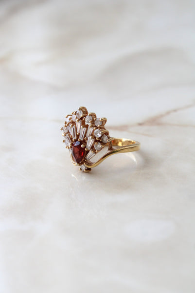 Art Deco 14K HGE Peacock Style Garnet Ring | Size 8