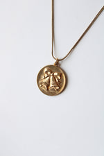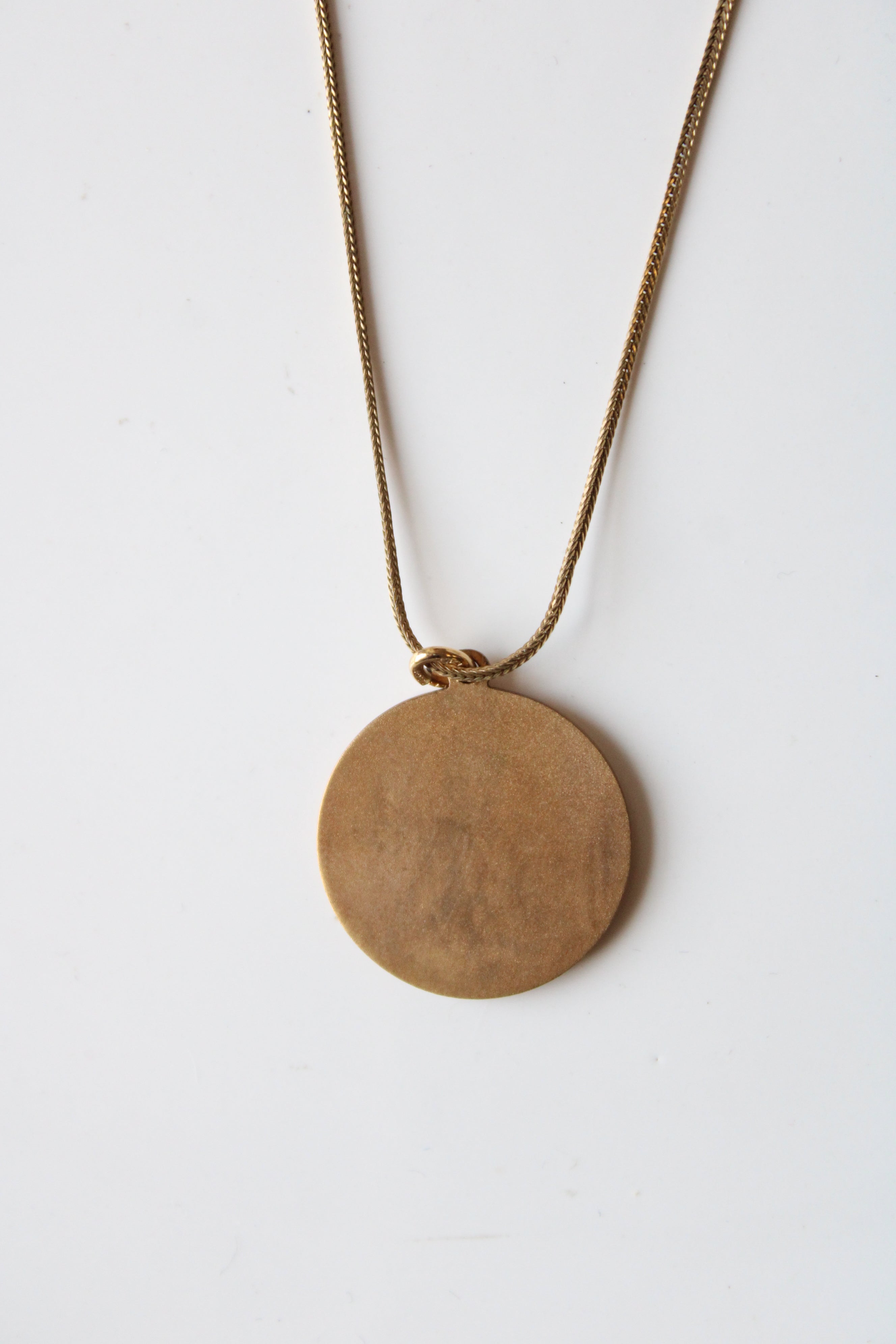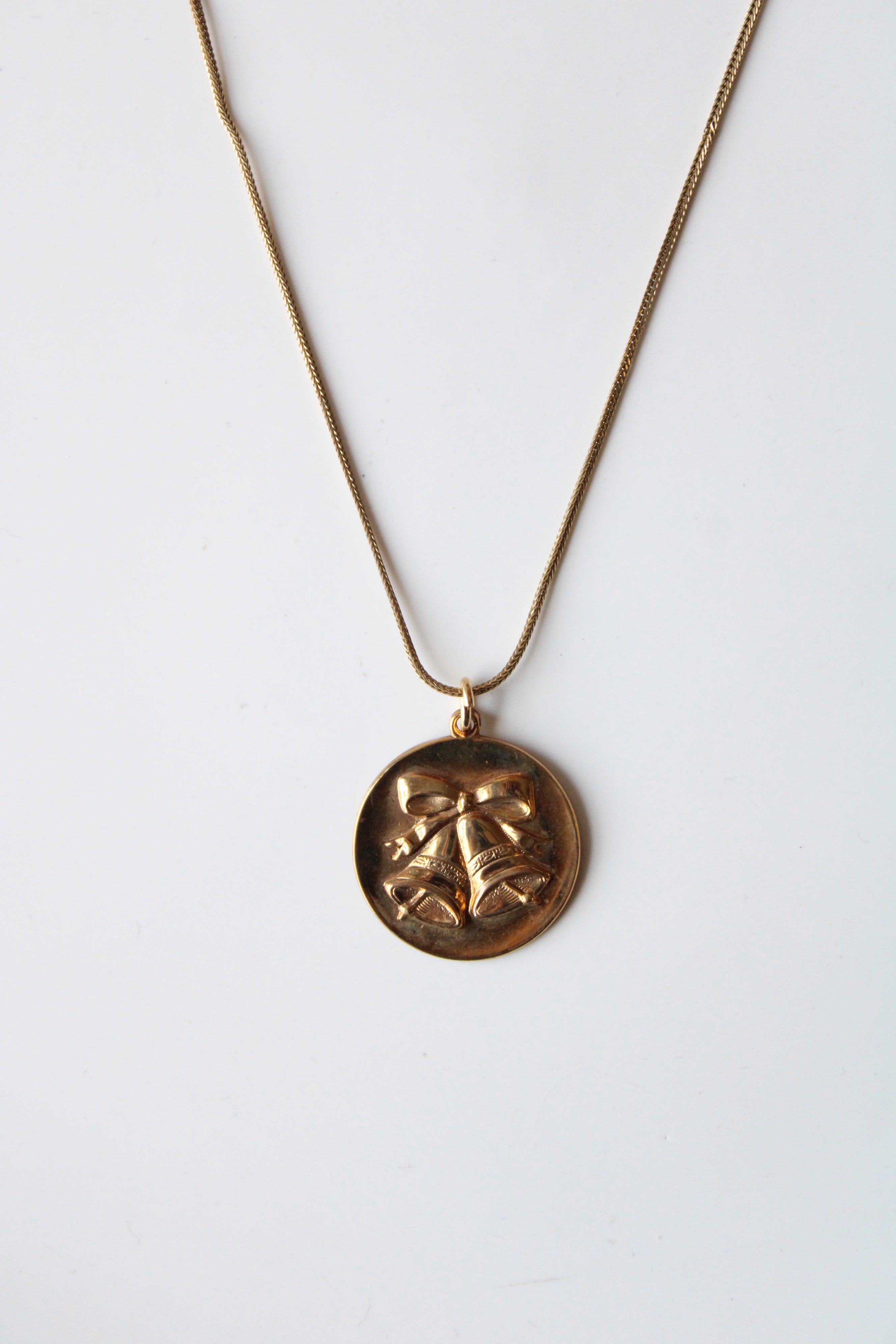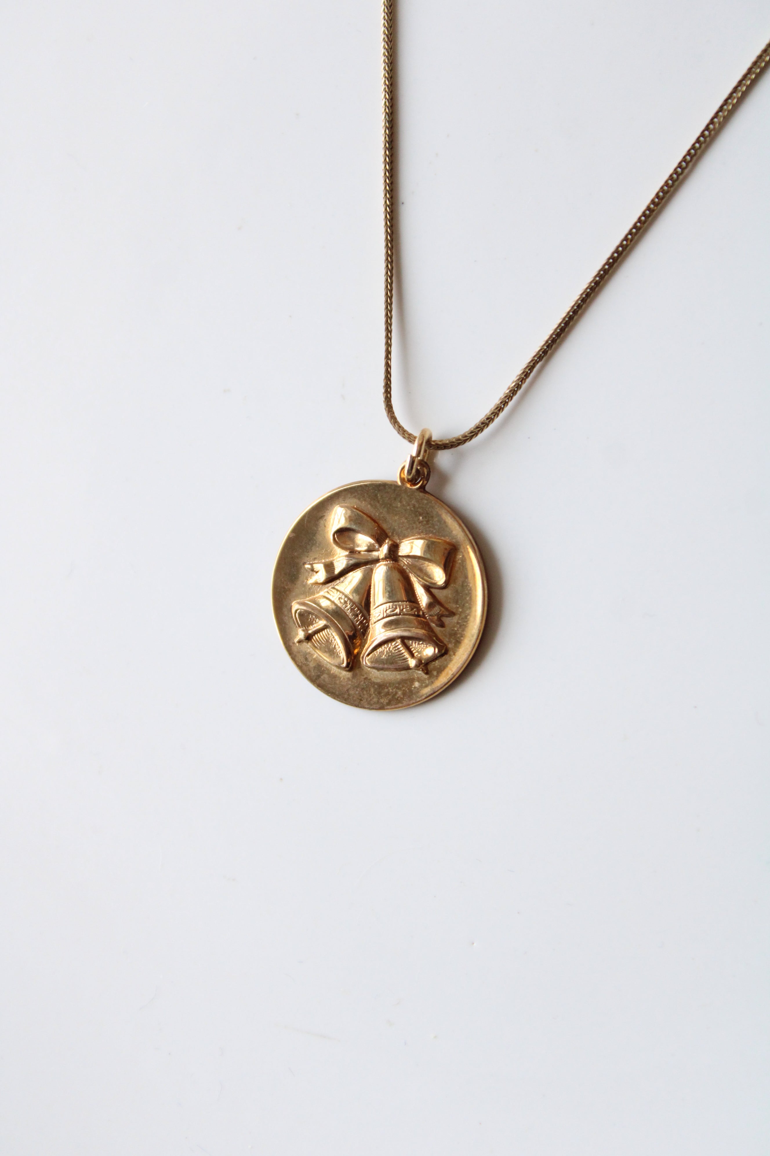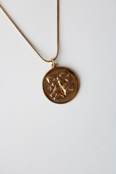 Bells & Bow Engraved Round Pendant Gold Necklace