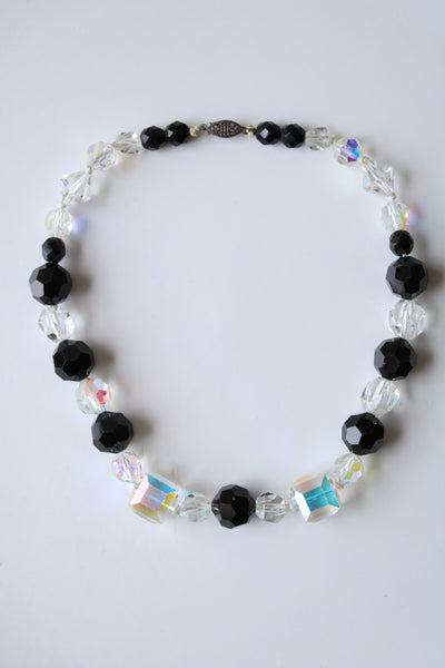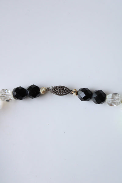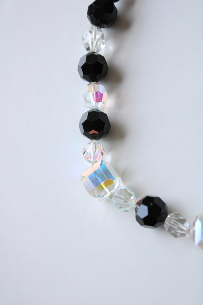 Black & Clear Glass Beaded Choker Vintage Facet Necklace