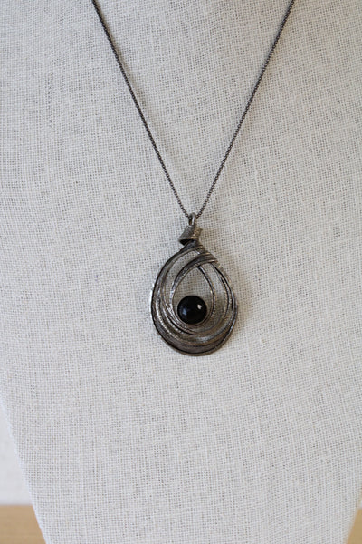 Black Druzy Sterling Silver Necklace