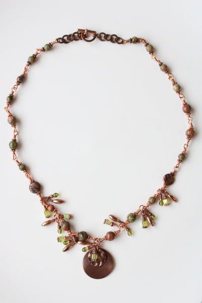Copper Green Beaded Boho Style Necklace