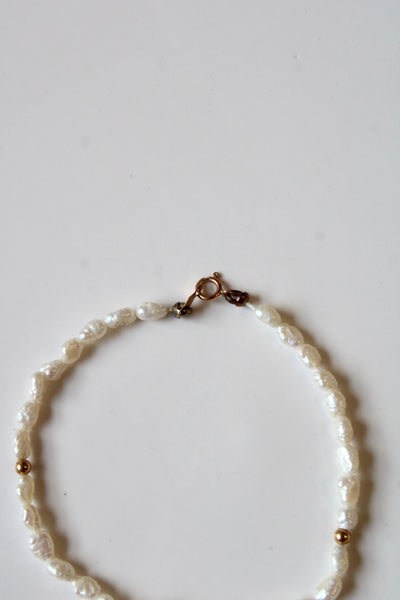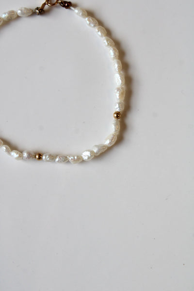 Freshwater White Rice Pearl & 14KT Gold Bracelet