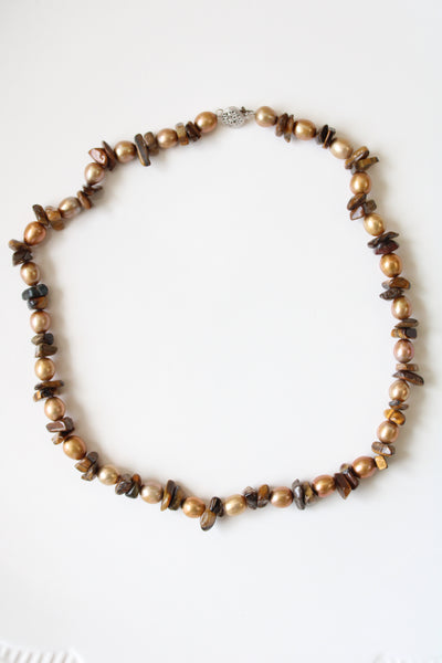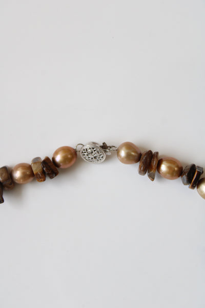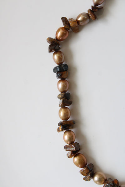 Genuine Brown Pearl & Tigers Eye Necklace