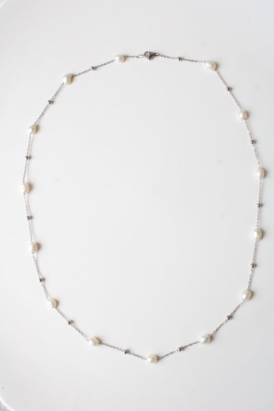 Genuine Pearl Sterling Silver Chain 22" Necklace