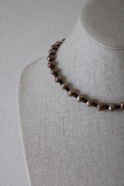 Genuine Tan Pearl Beaded Necklace