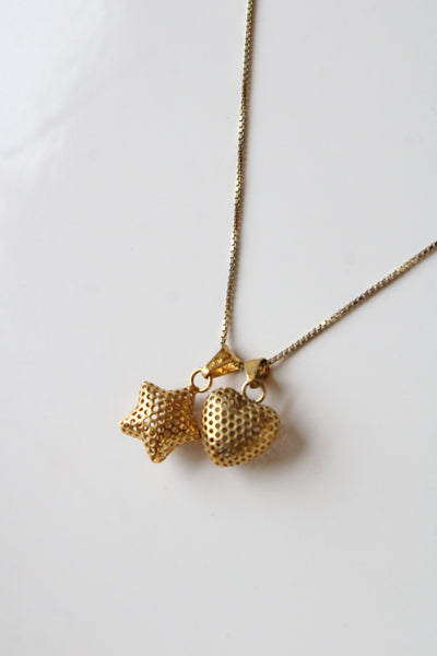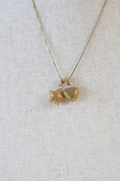 Gold Coated Sterling Silver Heart & Star Pendant Necklace