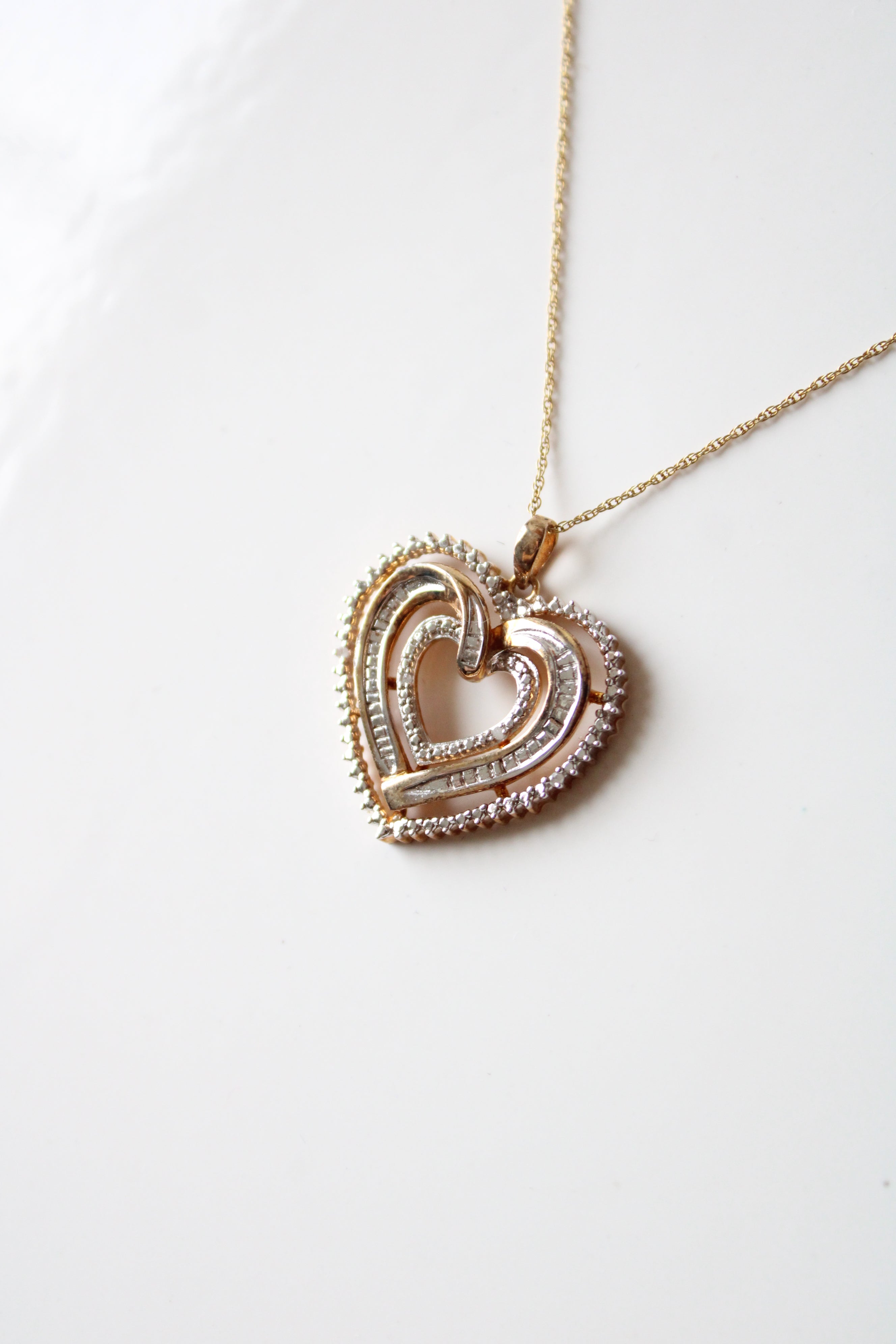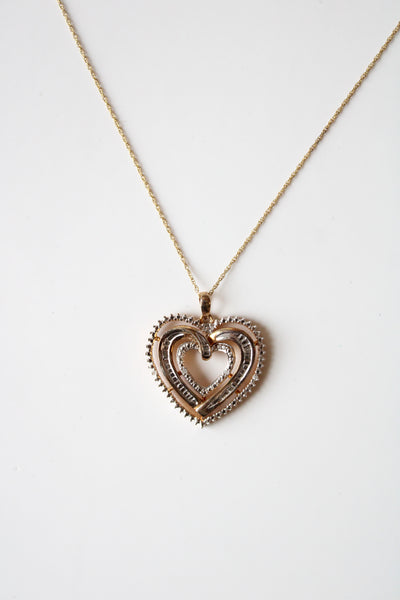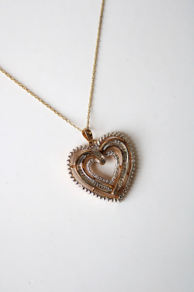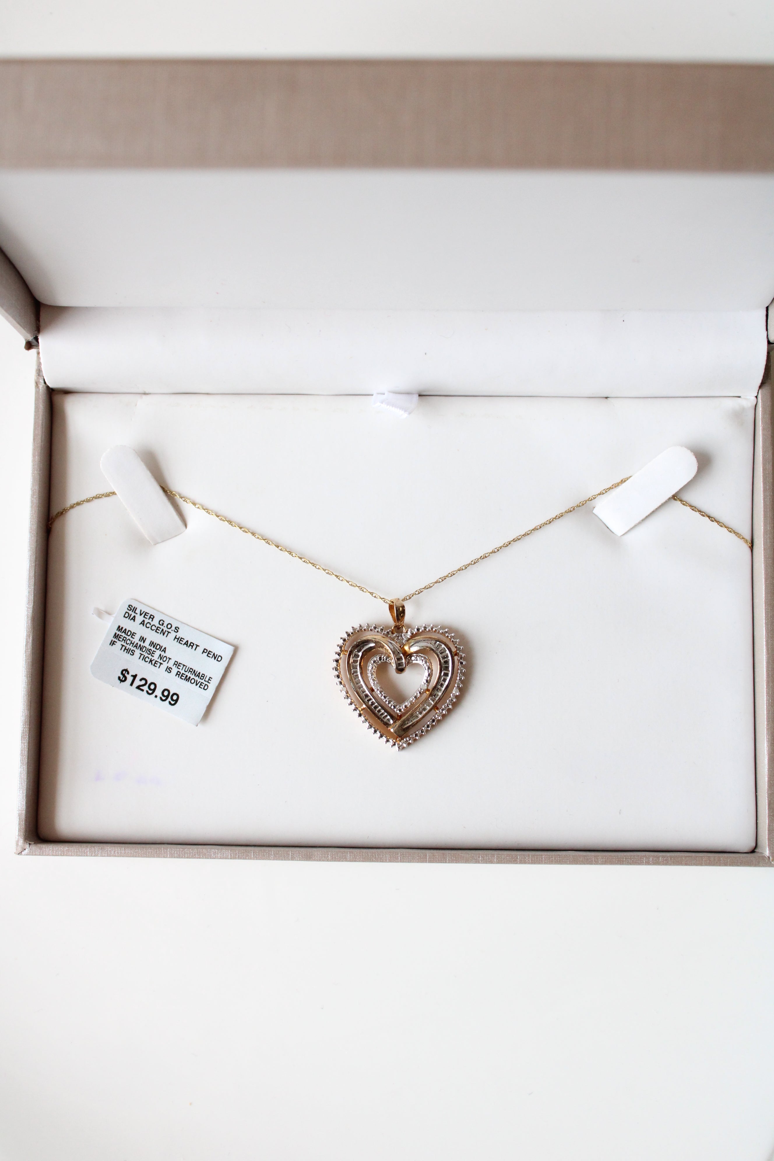 Heart Diamond Accent Two-Toned Sterling Silver Heart Pendant Necklace