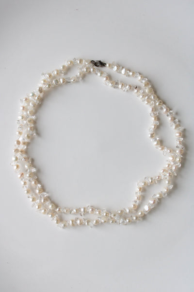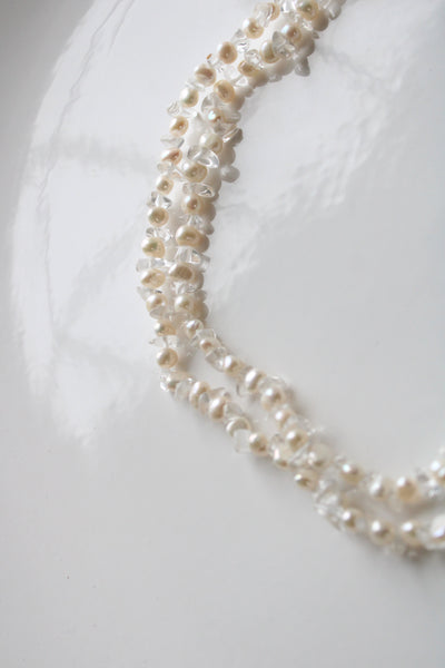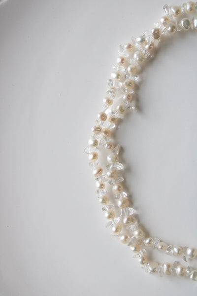 Ivory Genuine Pearl & Clear Glass Beaded Necklace