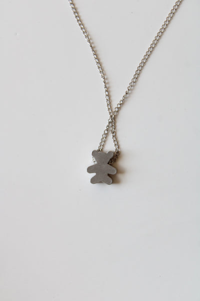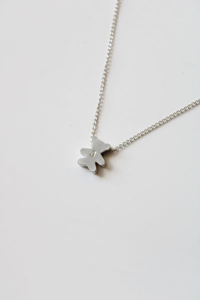 "J" Initialed Teddy Bear Sterling Silver Necklace