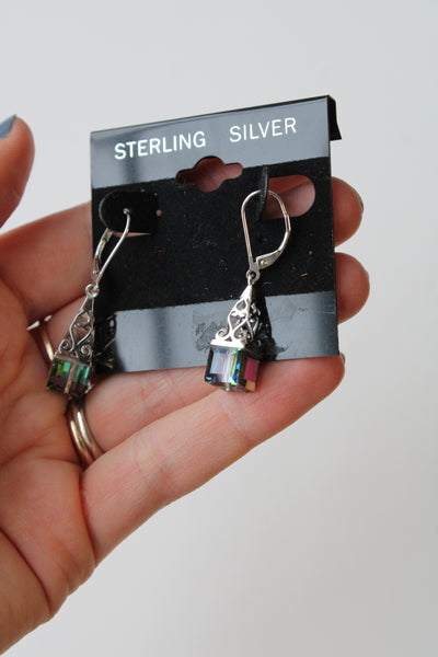 Multi-Color Crystal Sterling Silver Earrings