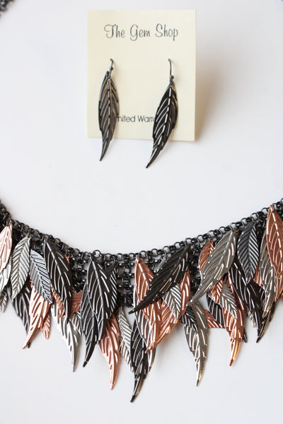 NEW The Gem Shop Mixed Metal Feather Necklace & Earring Set