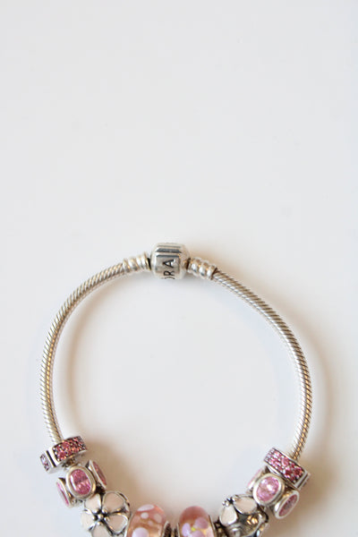 Pandora Pink Flower Charm Beaded Bracelet