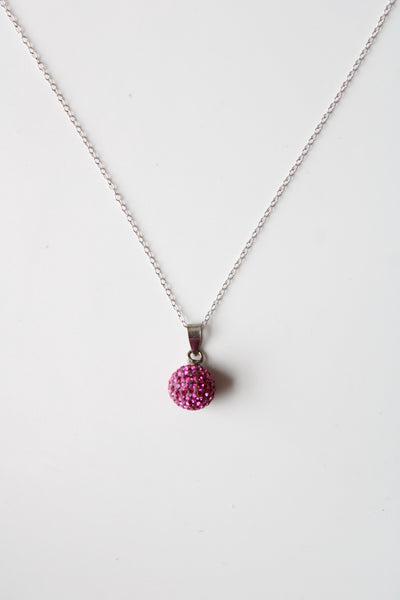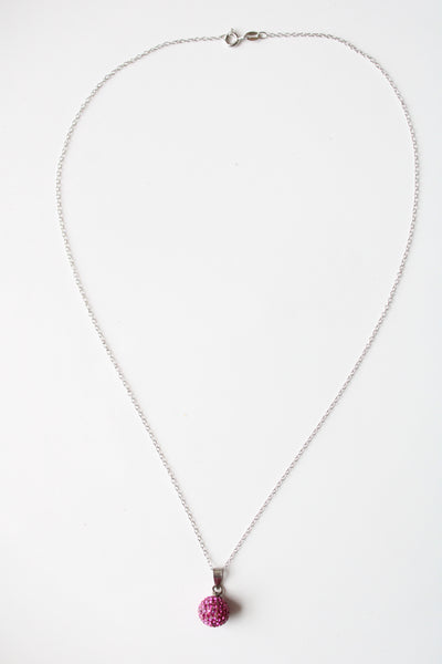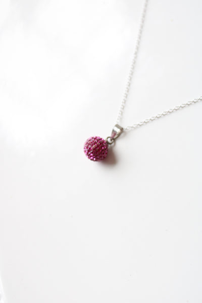 Pink Crystal Pave Disco Ball Pendant Sterling Silver Necklace