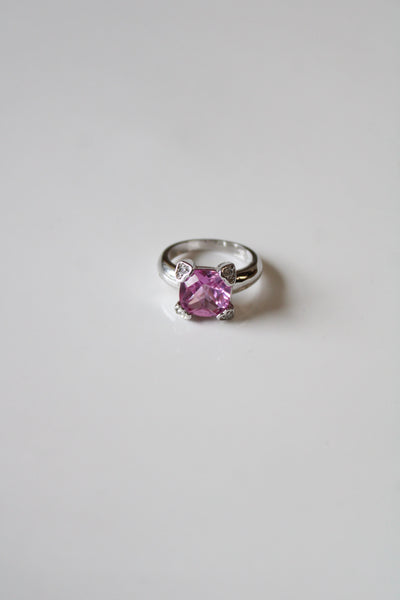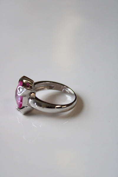 Princess Cut Pink Stone Sterling Silver Ring | Size 7