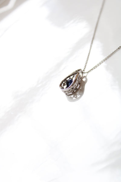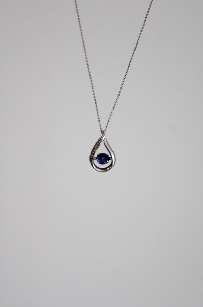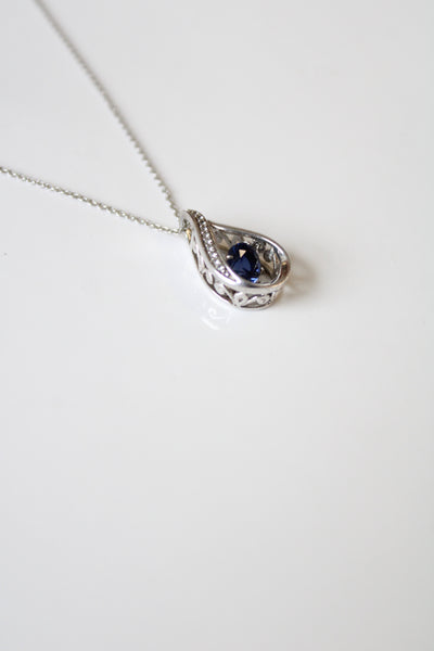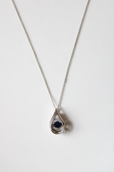 Sapphire Teardrop Sterling Silver Pendant Moving Gem Necklace
