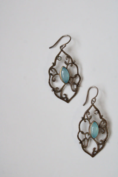 Silpada 925 Sterling Silver Wandering Ivy Chalcedony Cubic Zirconia Earrings