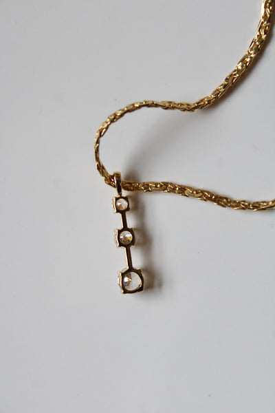 Three Stone Bar Gold Filled Necklace