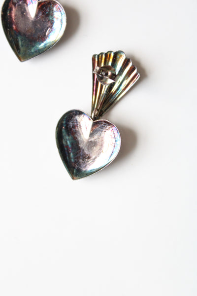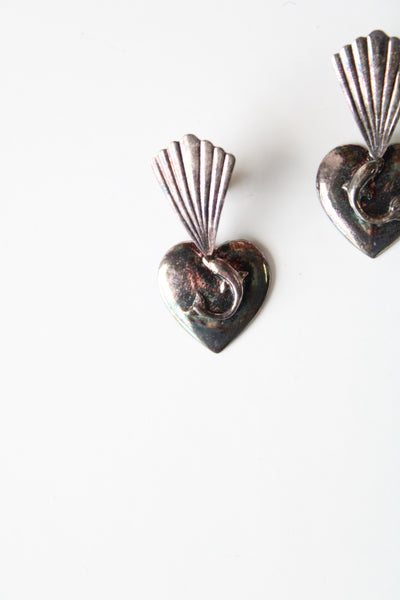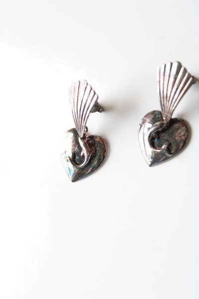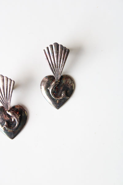 Vintage Dolphin Heart Sterling Silver Stud Dangle Earrings
