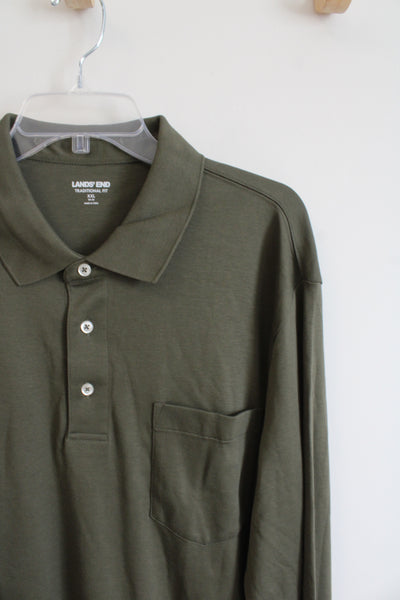 Lands' End Green Traditional Fit Long Sleeved Collared Shirt | XXL