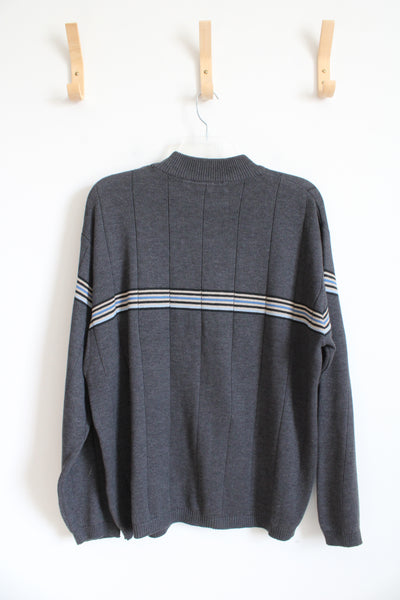 Adolfo Black Tan & Blue Striped Gray Sweater | XL