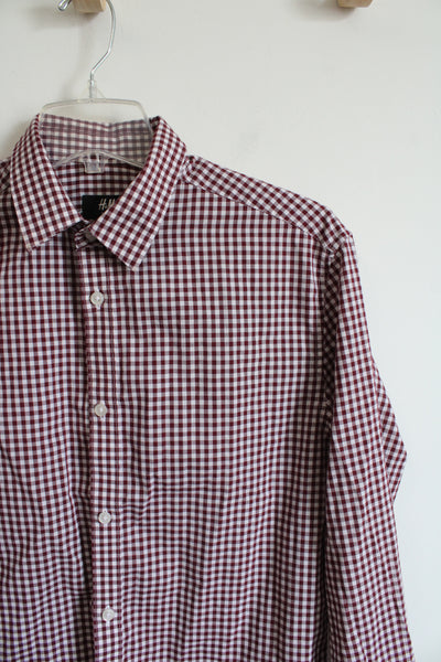 H&M Slim Fit Red & White Plaid Button Down Shirt | M