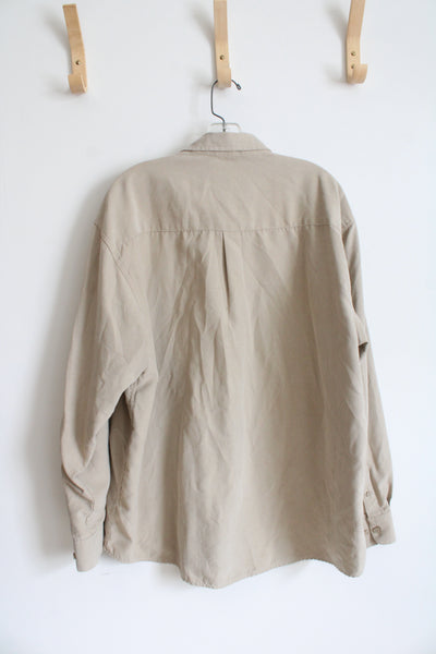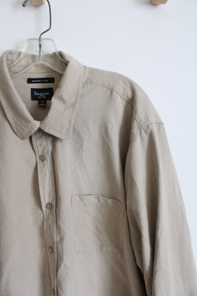 Haggar Sueded Luxe Tan Button Down Shirt | XXL