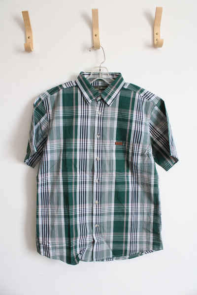 Jeep Green Blue Gray & White Plaid Button Down Shirt | L