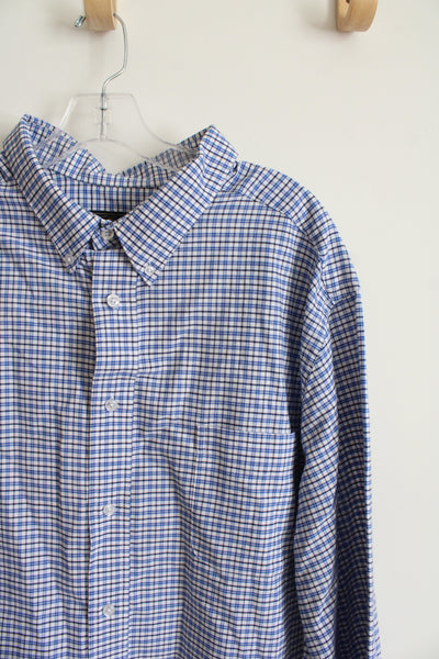 KS Signature Blue & White Plaid Button Down Shirt | 19 35/36