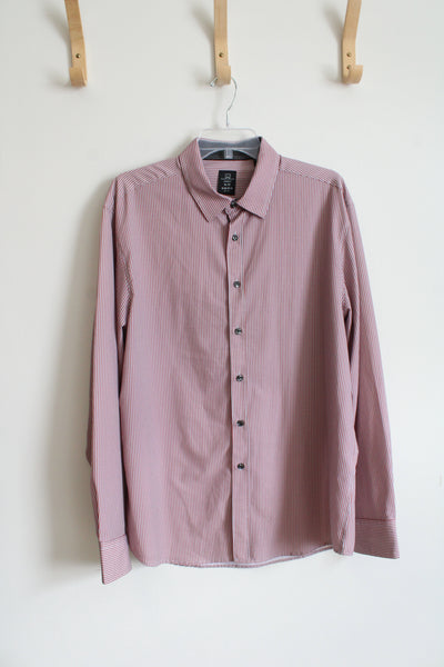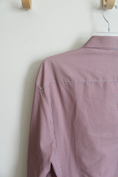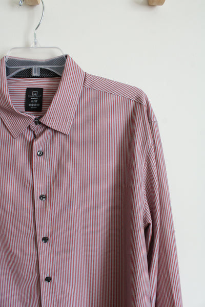 Michael Strahan Modern Fit Red Gray & White Plaid Button Down Shirt | XL