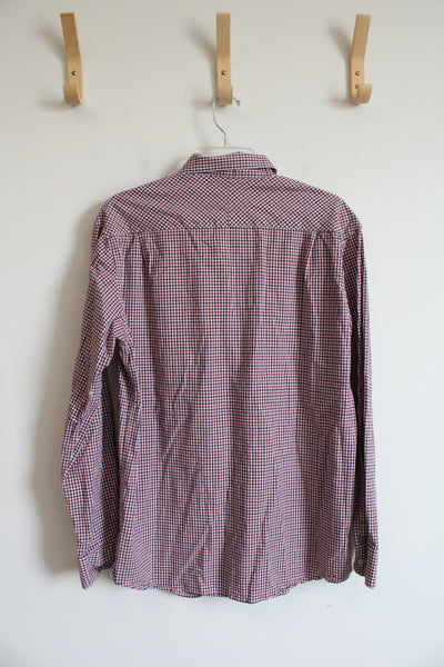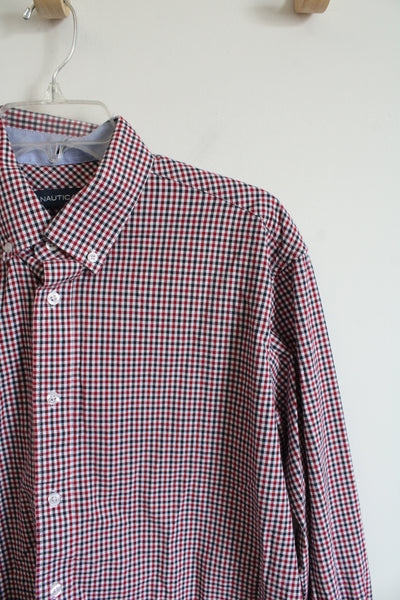 Nautica Regular Fit Red White & Blue Plaid Button Down Shirt | L