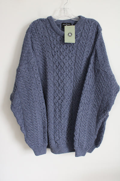 NEW The Irish Store Aran Light Blue Cable Knit Sweater | XXL