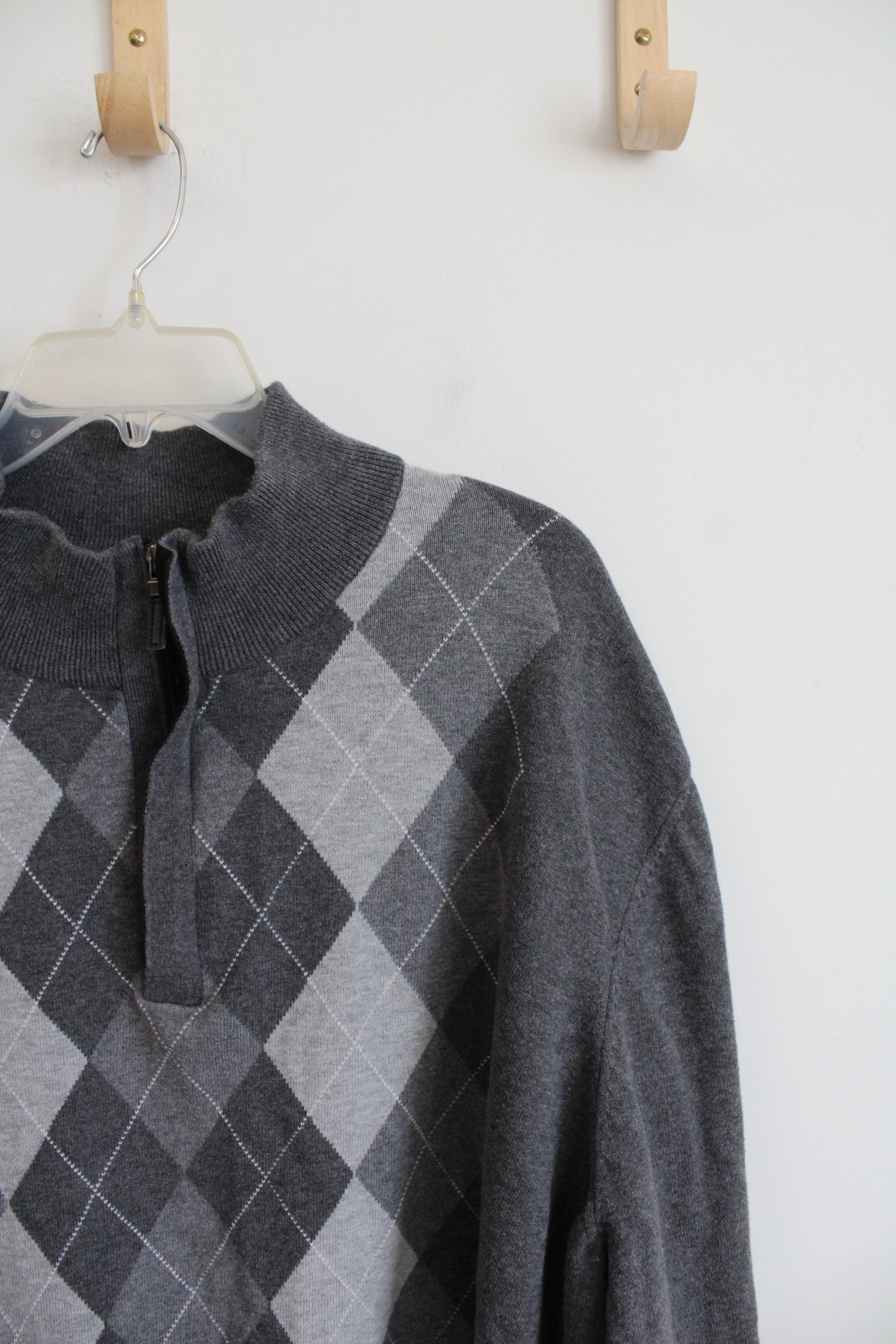 Oak Hill Gray Argyle 1/4 Zip Sweater | 3XL Tall