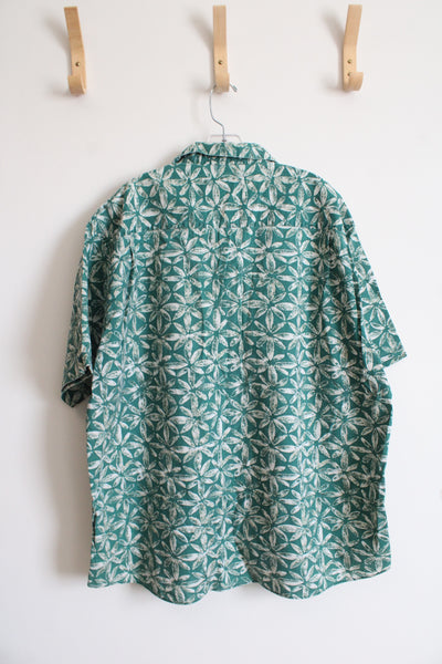 Van Heusen Green Floral Button Down Cotton Shirt | L