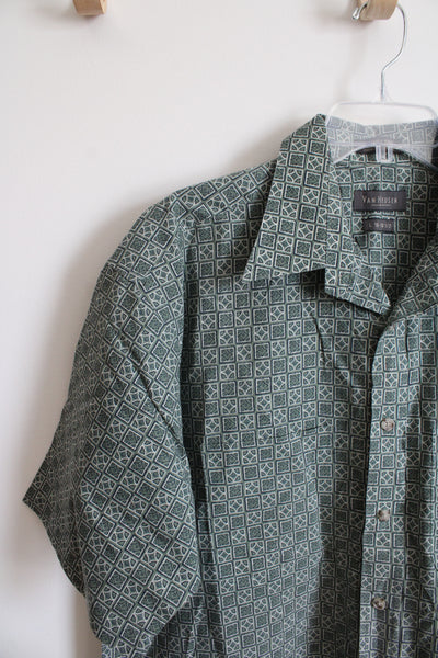 Van Heusen Green Square Patterned Button Down Shirt | L