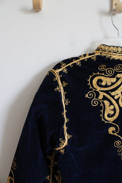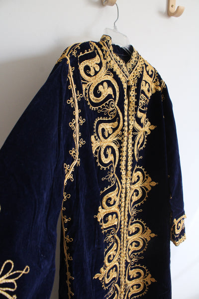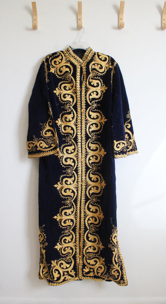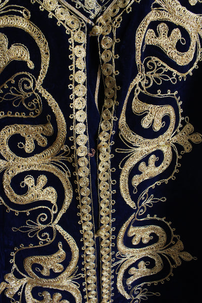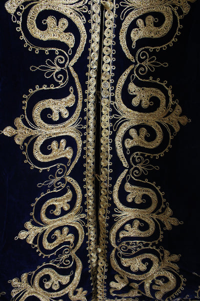 Vintage Navy Velvet & Gold Trim Kaftan