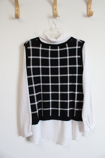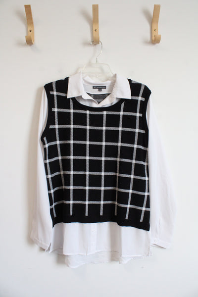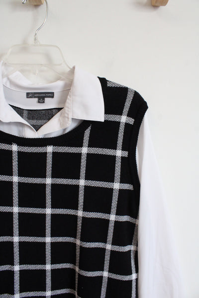 Adrianna Papell Black & White Sweater Vest Over Button Down Top | M