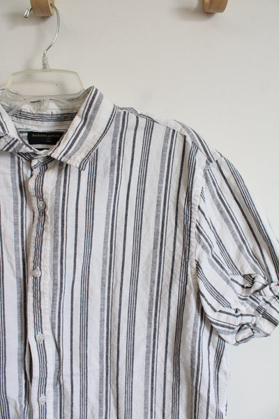 Banana Republic Slim Fit Gray & White Striped Linen Blend Button Down Shirt | XL