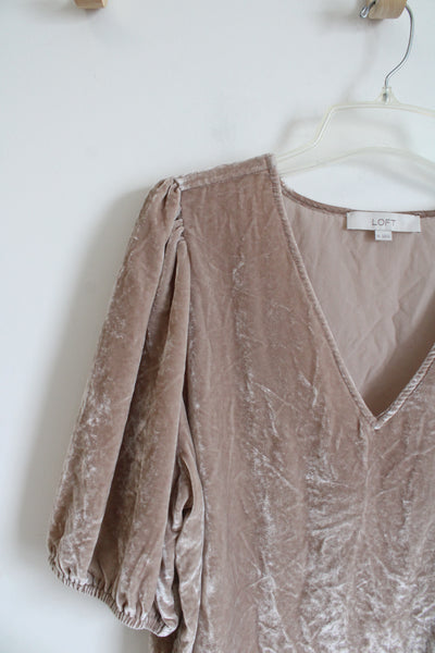 LOFT Taupe Crushed Velvet V-Neck Top | XL